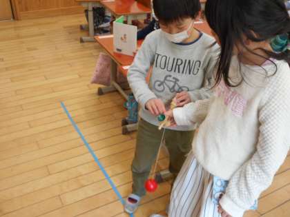 今日は,けん玉で遊びました。