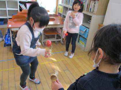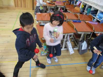 1年生 けん玉で遊んだよ