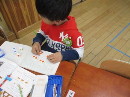数図ブロックをつかって,分けて考えました。