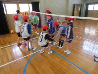体育の時間でソフトバレーボールの学習をしています。サーブが相手のコートにしっかりと入ることが増えてきました。しかし,なかなかチーム内でボールをつないで相手コートに返すことが難しいようです。つなぐという意識をめあてにして次回のソフトバレーボールも楽しみたいと思っています。