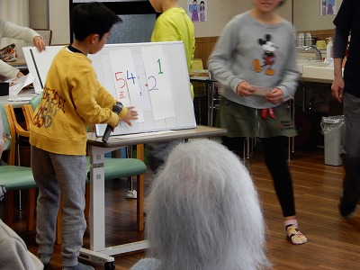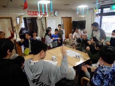 「健康すごろく」「かくれんぼクイズ」と高齢者の方と小学生が1つになる楽しいレクリエーションにすることができました。