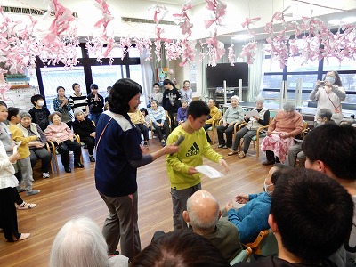 最後はプレゼントを渡したり、1人ずつ高齢者の方に「ありがとうございます。」と伝え、金閣スマイルプランを終えました。高齢者の方からも「ありがとう。」と言っていただき、高齢者以上に笑顔になっている子どもたちがいました。