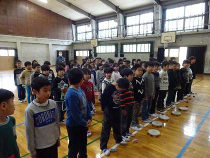 6年生をおくる会に向けて,今日はじめて講堂で練習しました。とてもはりきって大きな声で練習していました。