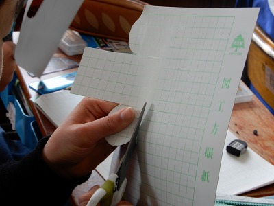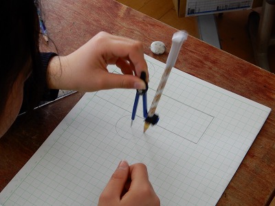 円柱の展開図をかく学習をしました。円柱の側面にあたる長さと円周が同じ長さだということを使ってかきます。前の学習で習ったことを上手く使ってかきました。