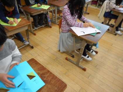 3・4時間目に図画工作科で工作用紙をカッターナイフで切って,窓を作る活動をしました。子どもたちは,学校で始めてカッターナイフが使えることに大喜びしていました。