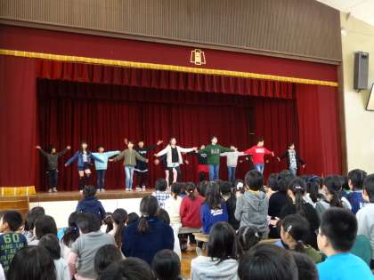 保護者の皆様やたくさんの児童が発表を観に講堂に集まり、会場は手拍子で大いに盛り上がりました!