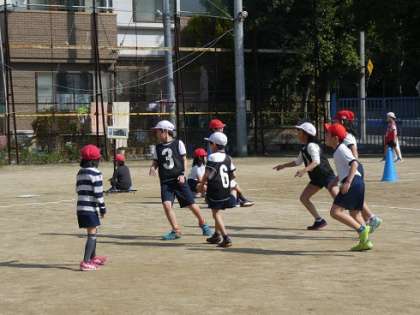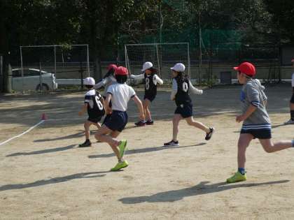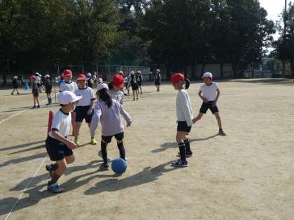体育の学習でサッカーをしています。試合をしていく内に,味方の人へのパスが上手になったり,相手の動きを見て動くことができるようになりました。味方がゴールすると「ナイスゴール」といったり,上手にパスをすることができたら「今のパスいいね。」など,声をかけ合って取り組んでいます。