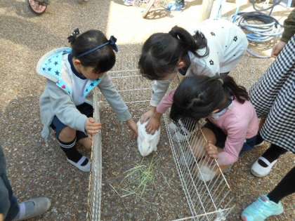 アニマルスケッチコンテストの参加賞で,動物のふれあい会のチケットをもらいました。そのふれあい会が今日ありました。うさぎを触って