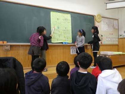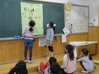 一年間,衣笠山に行ったり,調べたりしたことを新聞にまとめたので,学年で発表会を開きました。