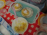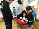 レジ係では,高校生の前でも計算を間違えずに支払いをしたり挨拶をしたりすることができました。ケーキ係は,最後の最後まで工夫を考え,粉砂糖を使ってケーキに模様を入れました。「工夫がすごい!」と声をかけてもらいました。