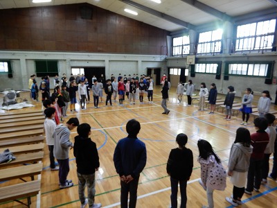 音楽室で歌うのとは異なり、講堂では思うように声が響きません。そこで、円になってお互いの良さを見つけながら歌ってみることにしました。友達の良さを上手く吸収し、レベルアップを図りました。