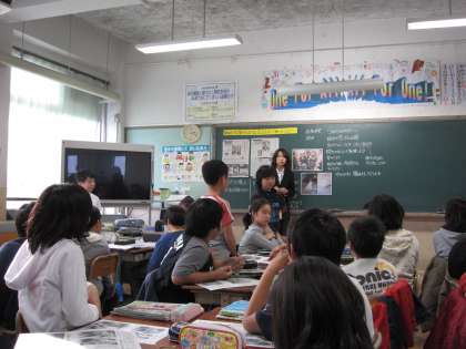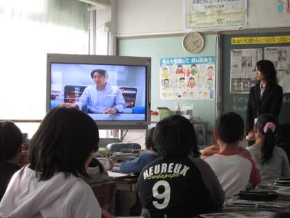 担任が新聞社へ取材に行き、インタビューして来たものを、編集して資料として活用させました。