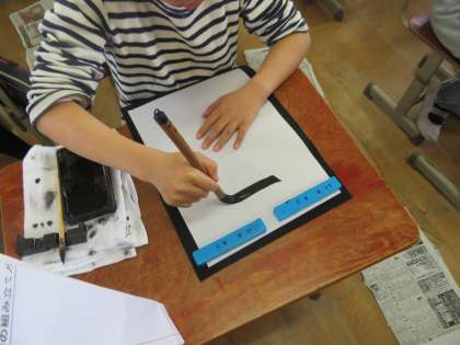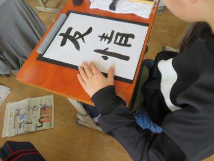 書写の学習で「友情」という字を書きました。文字の組み立てに気を付けて,ていねいに仕上げました。