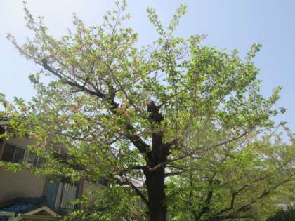 花が散った桜の木も、観光道路の近くのモミジの木も、学校のひょうたん池の奥のカツラの木も、新しい葉が出始め、新緑が目に眩しくなってきました。運動場から見える衣笠山も、そろそろ衣替えを始めようとしています。
