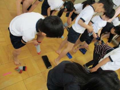 2年生 身体計測 「立ったまま,靴下を脱げるかな」