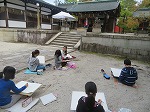わら天神では,それぞれが思い思いの場所を見付け,写生をしました。建物だけでなく細かな飾りや,木々の様子などにも目を向けて描いていました。