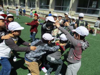 中庭で 遊び係さんが企画してくれた遊びをしました。