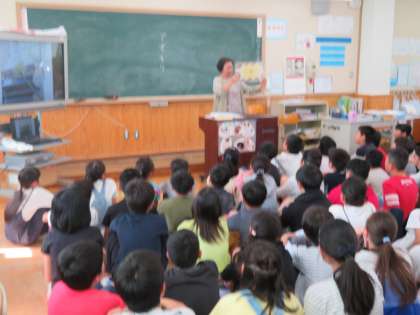 総合の学習で平和学習をスタートしました。金閣小学校の理科室前には,かつての6年生が広島から持ち帰ったアオギリの木が植えてあります。なぜ広島からアオギリを持ち帰ったのか,絵本の読み聞かせを通して子どもたちは学習しました。