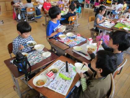 給食を食べました。