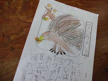 国語の「きつつきの商売」では,きつつきが音屋を開店したというお話です。昨日は,