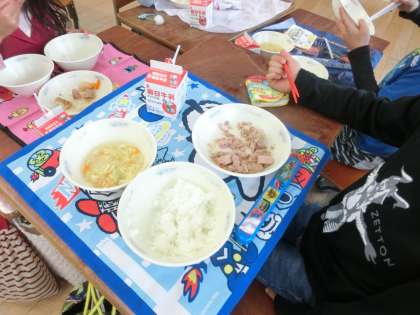 今日の献立は,「ごはん」「なま節と厚揚げの煮つけ」「キャベツのかきたま汁」でした。子どもたちは,なま節の食感や味を楽しんでいました。厚揚げはあまーい味がしみていてとてもおしかったです。