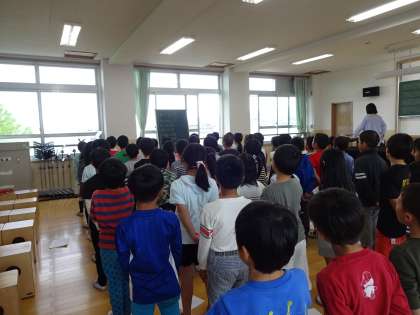 今日は,学年合同で1年生をむかえる会の練習をしました。大きな声で,伝えようとせりふを一生懸命言っていました。
