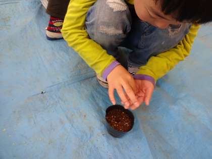理科の学習で,オクラ・ホウセンカの種を植えました。小さな種を大切に植えていました。大きく育つよう頑張って世話をしてほしいです。
