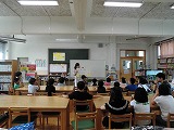 4校時は図書の時間でした。今日は,図書館支援員の前田先生から図書室の使い方や本の扱い方についてお話をしていただきました。その後に絵本と生き物の本の読み聞かせをしました。