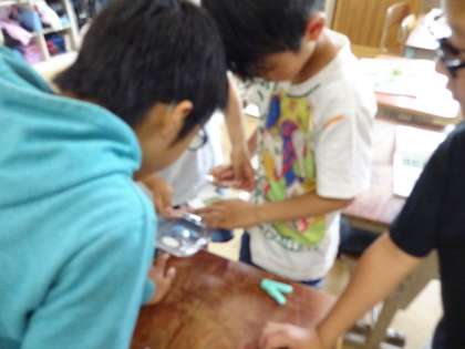 モンシロチョウのよう虫を観察する準備を行いました。1グループに1匹,キャベツから取って準備したカップに入れました。子どもたちは,早速カップの中のよう虫が気になるようで,空いた時間に観察していました。