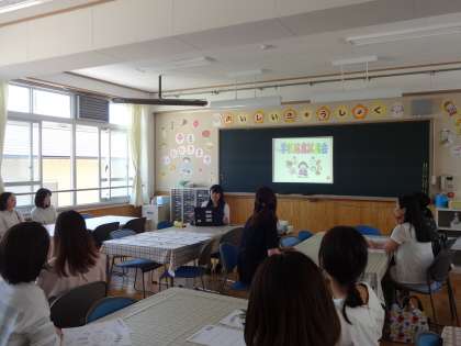 まずは、福井由友子栄養教諭より、学校給食や食育の取組などについてお話させていただきました。