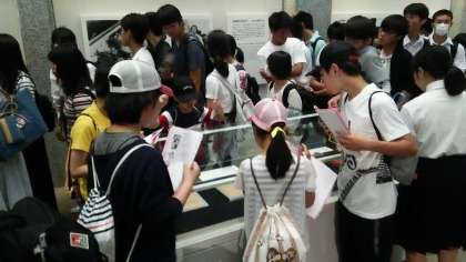 平和資料館を見学しています。事前に学習したことを思い出しながら、原爆の恐ろしさ、平和の大切さについて、改めて学んでいます。