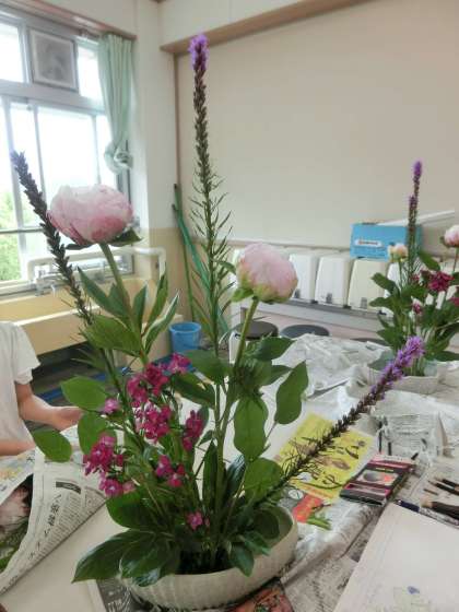 今回も素敵な作品ができあがりました。作品ができあがると,スケッチしてから花を持ち帰ります。熱心にスケッチしている様子も見られました。
