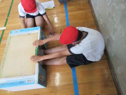 反復横跳びでは,横跳びをリズムよく継続することに,長座体前屈では日常生活では使うことが少ない柔軟に,戸惑いながらも,楽しみながらチャレンジしていました。