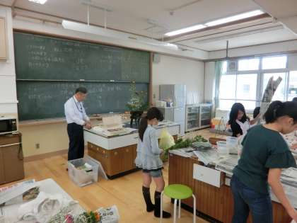 本日も,本校の家庭科室で生け花教室を開催しています。