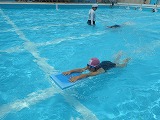 今日のプール学習の時間は良いお天気で,プール学習日和でした。今日は,いつもより距離を長くして泳ぐ練習をしました。前回よりも長く泳げたり,長く水に潜っていられたりできるようになりました。久々のプール学習でしたので,みんなとても楽しそうに学習していました。