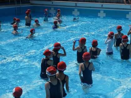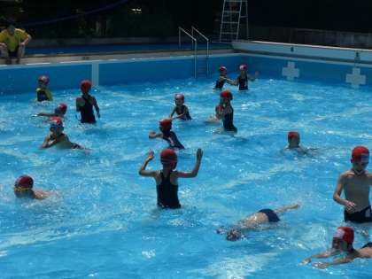水に慣れてきて,水に顔をつけたり浮いたりするのも抵抗なくできるようになってきました。どうしたら上手に浮くことができるのか,お互いに見合って,アドバイスをし合いました。