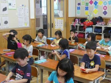 七夕の願い事を考えて,短冊に書きました。「家族が元気に暮らせますように。」「友達と仲良く過ごせますように。」などそれぞれの思いが詰まった短冊が出来上がりました。子どもたちが書いた短冊は,一年教室廊下前に飾っています。