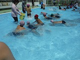 昨年度は雨でプールに入れませんでしたが,今年度はいい天気でプールに入れて子どもたちは大喜びでした。みんなと楽しい交流ができて嬉しかったようです。