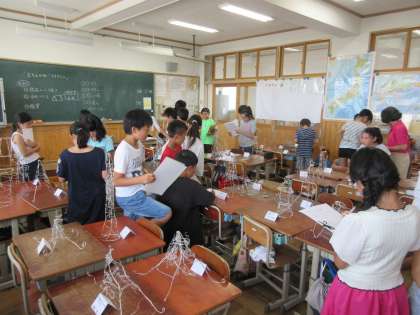 図工で制作した「立ち上がれマイライン」の鑑賞の授業を行いました。