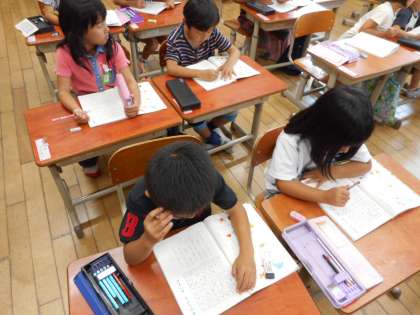 教科書の表を見て,縦,横,斜めに隠れている言葉を探しました。