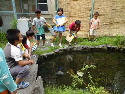 今日の総合の「はばたき」の時間では,1学期に引き続き,学校の生きものについて調べました。どこに,どんな生き物がいるのかを実際に見て回り,生きものマップを作りました。