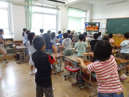 今日は,空き時間を利用し全校ダンスの練習をしました。「右から・・。」「次は,左・・・。」と細かいところに気をつけながら頑張って踊っていました。