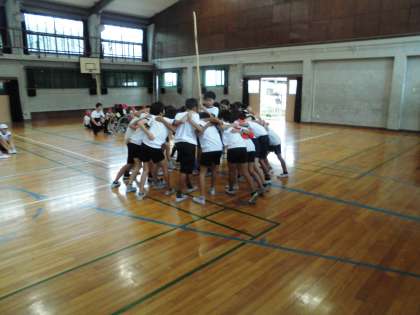 雨でグランドに出ることができず,講堂で進行・移動の確認を指導しました。