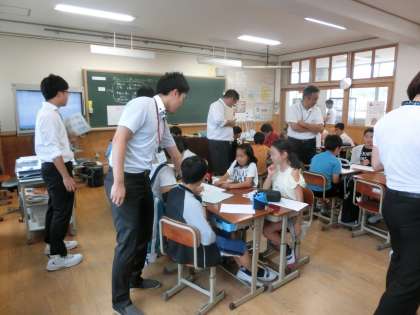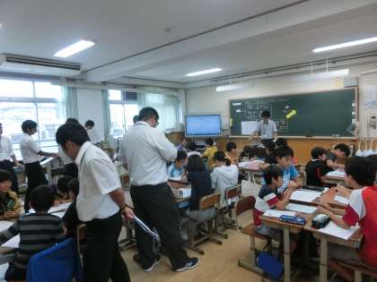 6年は組で,担任の山崎先生が,他校の1年目の先生たちに授業を公開しました。は組の子どもたちが,普段の学習の様子を見せていました。進んで発表し,活発に活動していました。子どもたちの素敵な姿が見られた授業でした。1年目の先生たちも感心しながらその様子を見ていました。