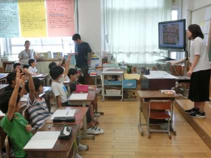 本日,3年ろ組の教室をお借りして,教員の指導力向上を目指した研究授業を行いました。「商店のはたらき」という単元でした。子どもたちが,先生から提示された資料を食い入るように見つめ,商店の工夫について考える姿が素敵でした。
