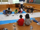 体育の時間では,ダンスとバルーンを使って演技をする練習を行い,図工の時間で,子どもたちが考えた最後に見せるお楽しみ演出の準備を行いました。