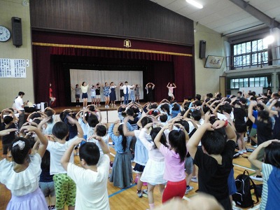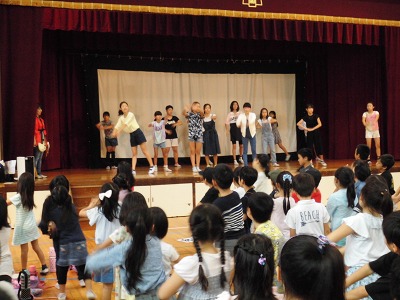 PTA主催の秋祭りで6年生のダンスクラブの児童に活躍の場を頂きました。運動会でも行う準備運動を元気いっぱいに踊りました。他学年の児童も負けじと元気いっぱいに踊り、講堂中がとても楽しい雰囲気に包み込まれました。