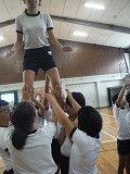 お天気がすっきりしない日が続いていましたが,今日は5時間目は講堂で,6時間目は第2グラウンドで組体操の練習を行うことができました。