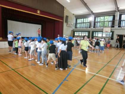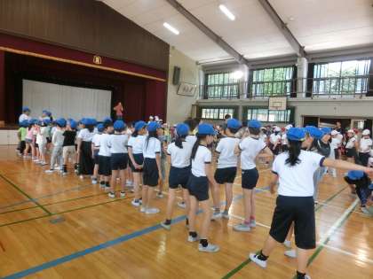 昨日に引続き,エントリー種目の並び方練習を行いました。今日は「綱引き」です。綱引きは,並び方によって勝敗を分けるといわれるほど,並ぶ順番が勝負のカギを握る種目です。今日は入場の仕方を中心に練習しました。