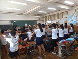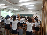 交流学年である5年生3人が司会進行をし,みんなでダンスを行いました。5年生もノリノリで,楽しい交流でした。